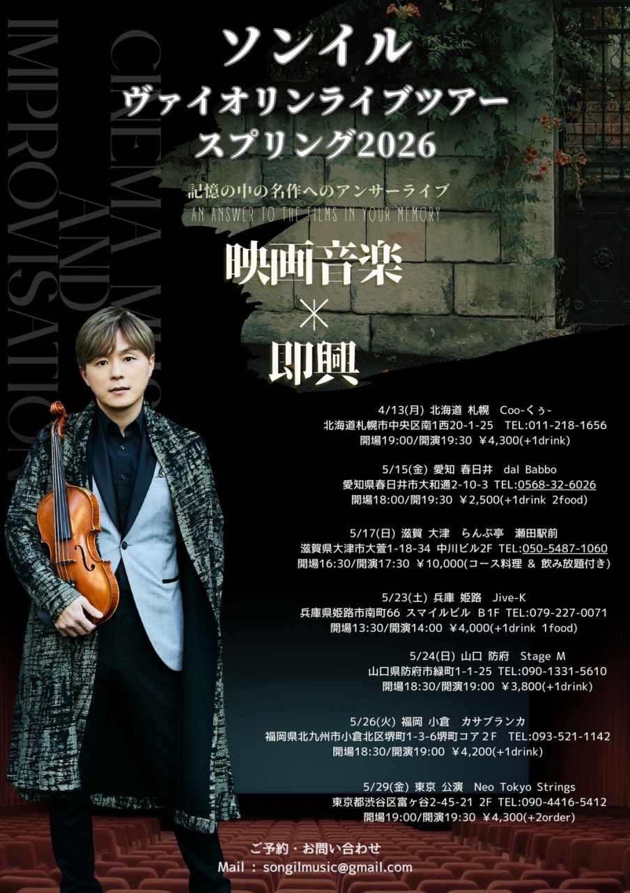 ご予約・お問い合せMail:songilmusic@gmail.com